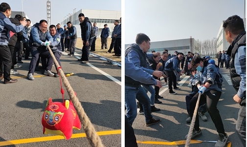 “1、2加油,1、2加油……”,大年初十中午的陽光溫暖明媚,有研稀土燕郊基地內(nèi)人頭攢動,吶喊助威聲此起彼伏,2022年新春“虎虎生威”拔河比賽正在這里隆重舉行。