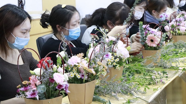 為熱烈慶祝國(guó)際婦女節(jié),活躍員工文化生活,3月7日,國(guó)合通測(cè)在懷柔科創(chuàng)園組織開展了“意繁花·綻芳華”主題插花活動(dòng)。