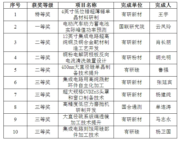 金秋九月,正是收獲的季節(jié),2022年全國機械冶金建材行業(yè)職工技術創(chuàng)新成果展示評選結(jié)果揭曉,有研集團共有10項職工創(chuàng)新成果獲獎,其中特等獎1項、一等獎1項、二等獎3項、三等獎5項。有研集團工會被命名為全國機械冶金建材行業(yè)職工創(chuàng)新成果展示優(yōu)秀組織單位。
