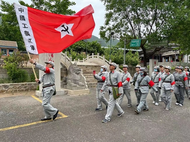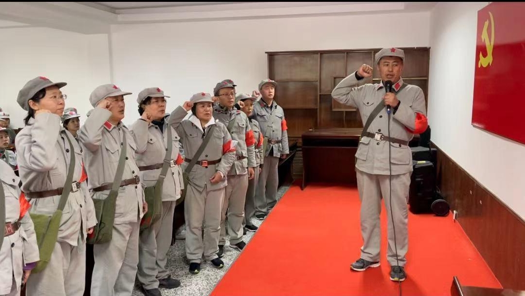 活動開始,首先進行換軍裝、授旗、授槍等神圣的儀式,分配了隊長、政委、旗手等角色,健全了紅軍隊伍體制。儀式莊嚴而肅穆,全體人員身穿戎裝,氣宇軒昂、英姿颯爽。