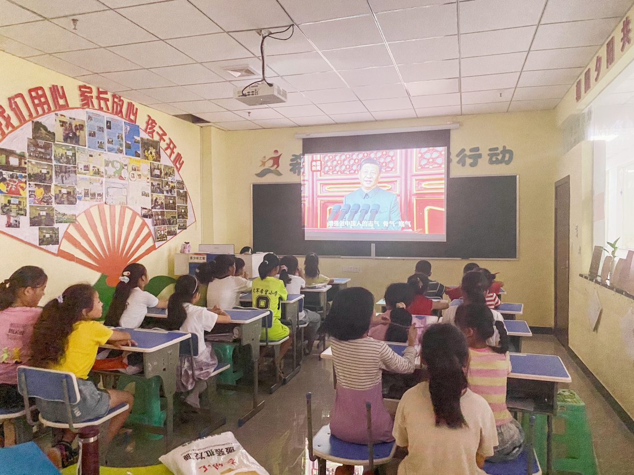 為加深孩子們對于建黨百年這一重要歷史時刻的印象,思政課上研究生支教團(tuán)與孩子們一起回顧了慶祝中國共產(chǎn)黨成立100周年慶典活動,認(rèn)真學(xué)習(xí)了習(xí)近平總書記重要講話和共青團(tuán)員與少先隊員代表致辭,習(xí)近平爺爺?shù)闹v話讓大家感受到由衷的自豪感,也讓孩子們暗暗許下了“請黨放心,強(qiáng)國有我”的誓言!