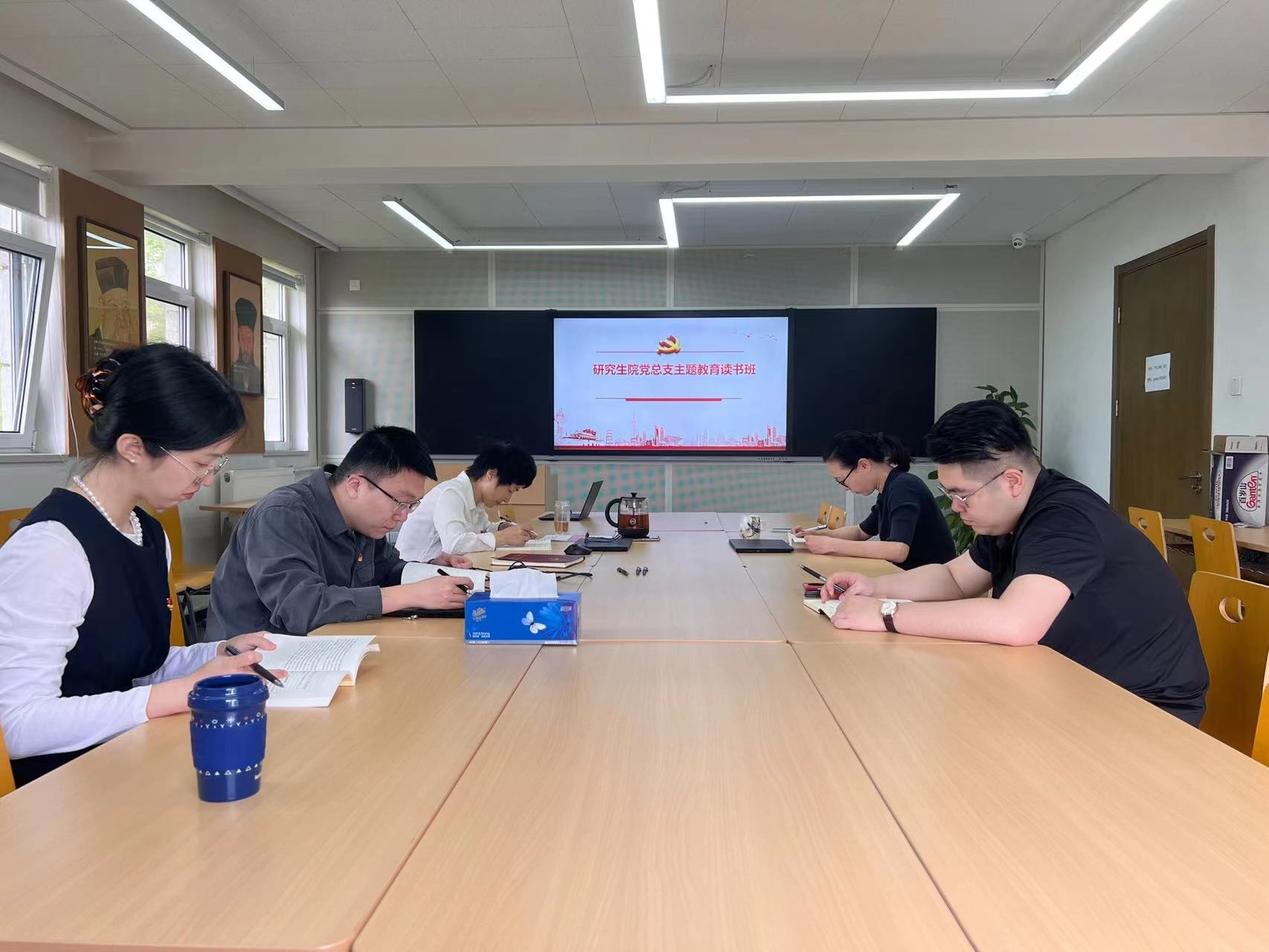 集中學(xué)習(xí)會上,大家聚精會神,目光沉浸在文字之中,仿佛忘記了周圍的一切,教室里靜得只剩下書頁緩緩翻動的沙沙作響聲。大家時而伏案研讀、時而凝神思考、時而奮筆疾書。教室里充盈著濃厚的學(xué)習(xí)氛圍,每個人都手不釋卷,把身子“釘”在座位上,讓思想“走”進(jìn)原著里。
