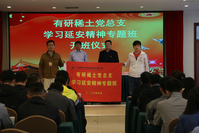 開班儀式上,延安市委黨校原副校長韓東峰介紹了延安的歷史背景、地域資源和發(fā)展現(xiàn)狀。有研稀土黨總支書記、總經(jīng)理劉榮輝做開班動員講話。他強(qiáng)調(diào),全黨正在開展學(xué)習(xí)貫徹習(xí)近平新時代中國特色社會主義思想主題教育,我們要堅定正確政治方向,深入學(xué)習(xí)貫徹習(xí)近平總書記關(guān)于稀土產(chǎn)業(yè)發(fā)展的重要指示精神,進(jìn)一步把握新時代高質(zhì)量發(fā)展的實(shí)踐要求,努力在延安精神中汲取奮進(jìn)之力,為加快打造稀土原創(chuàng)技術(shù)策源地、建設(shè)稀土材料創(chuàng)新高地、引領(lǐng)稀土行業(yè)科技發(fā)展貢獻(xiàn)力量。