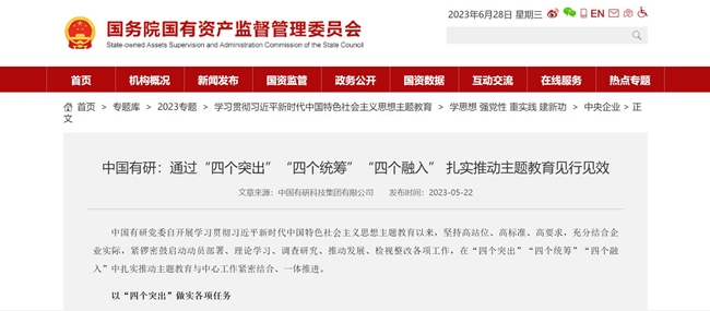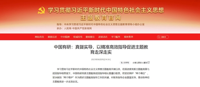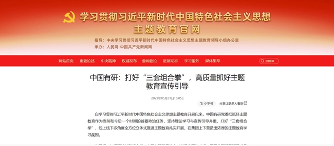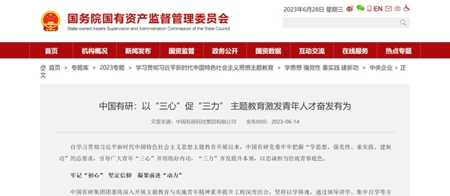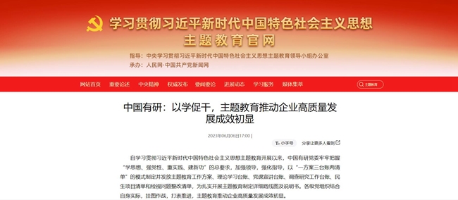 在中國共產(chǎn)黨102歲生日來臨之際,中國有研認(rèn)真總結(jié)主題教育好經(jīng)驗(yàn)好做法以及取得的成果,在中央主題教育官網(wǎng)、《學(xué)習(xí)時報》、國資委網(wǎng)站、學(xué)習(xí)強(qiáng)國、《中國有色金屬報》、集團(tuán)官網(wǎng)、官微等媒體刊發(fā)文章100余篇,傳遞有研聲音,營造濃厚氛圍,引導(dǎo)廣大干部職工切實(shí)把主題教育成果轉(zhuǎn)化為打造世界一流有色金屬科技創(chuàng)新企業(yè)的實(shí)績實(shí)效,為全面建設(shè)社會主義現(xiàn)代化國家、全面推進(jìn)中華民族偉大復(fù)興貢獻(xiàn)有研智慧和有研力量!
