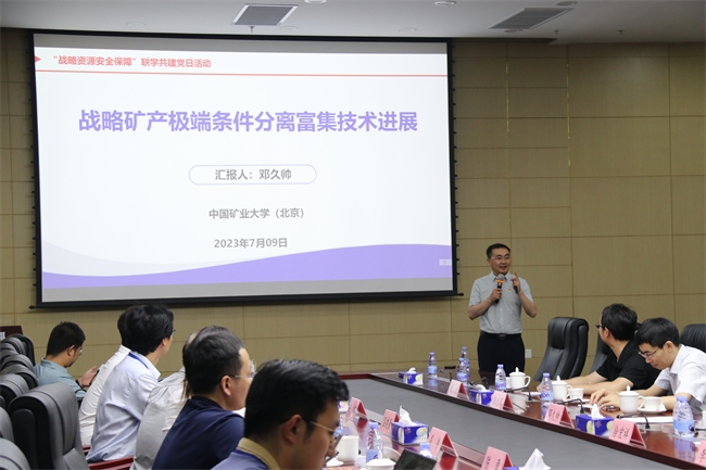 為深入開(kāi)展學(xué)習(xí)貫徹習(xí)近平新時(shí)代中國(guó)特色社會(huì)主義思想主題教育,強(qiáng)化以學(xué)鑄魂、以學(xué)增智、以學(xué)正風(fēng)、以學(xué)促干,7月9日,有研資環(huán)院第一黨支部與中國(guó)礦業(yè)大學(xué)(北京)礦加系黨支部開(kāi)展“戰(zhàn)略資源安全保障”聯(lián)學(xué)共建主題黨日活動(dòng)。有研資環(huán)院黨總支委員、第一黨支部書(shū)記、副總經(jīng)理溫建康,第一黨支部組織委員兼青年委員、綠色選冶事業(yè)部總經(jīng)理尚鶴,第一黨支部宣傳委員兼紀(jì)檢委員、分析測(cè)試中心主任屈偉;中國(guó)礦業(yè)大學(xué)(北京)礦加系黨支部書(shū)記張志軍、礦加系主任鄧久帥參加活動(dòng)。有研資環(huán)院第一黨支部相關(guān)黨員,高品質(zhì)有色金屬綠色特種冶金國(guó)家工程研究中心部分研究生;中國(guó)礦業(yè)大學(xué)(北京)礦加系黨支部相關(guān)黨員教師,2021級(jí)本科生,共75人參加活動(dòng)。